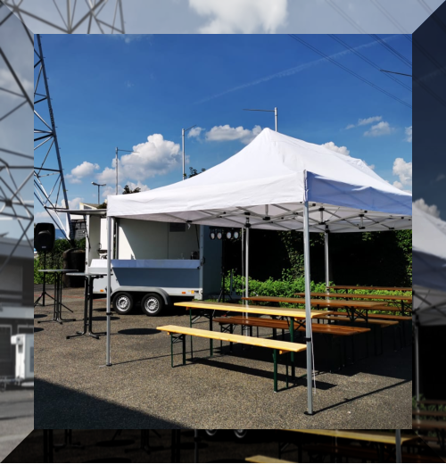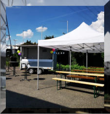 Festanhänger/Bedienungswagen mit Verkaufsklappe und hochwertiger Ausstattung für bis zu 60 Personen bei uns mieten!Die Grundausstattung beinhaltet:1 Faltpavillon 3 x 6 Meter4 Festzeltgarnituren 4 Stehtische4 Zeltgewichte60 Gläser nach WahlSteuerbare RGB LED Innenbeleuchtung1 Flaschenkühlschrank mit Glastüren (Kapazität: 220 Liter)1 Grill nach Wahl Holzkohle oder Gas (Brennmaterial optional, Spanferkelgrill , Grillwagen ausgenommen)1 Aktivmusikbox 600 Watt inkl. Lichtanlage1 Falttisch zum Thekenbau1 Stromzuleitung 380 V und 220 V möglich *Optional können Sie alle Artikel aus unserem Sortiment dazu buchen (zb. Hussen, Tischdecken, Kaffeemaschinen, Bierzapfanlage, Heizungen, Gläser, Geschirr, Bestecke etc.)Der Hänger wird von uns Beladen Geliefert und wieder Abgeholt Sie müssen sich um nichts kümmernGerne stehen wir Ihnen auch in Sachen Dekoration und Gestaltung beratend zur Seite.…..oder mieten Sie unseren Veranstaltungsraum in Mainz Mombachweitere Informationen erhalten Sie HIER