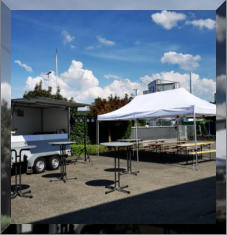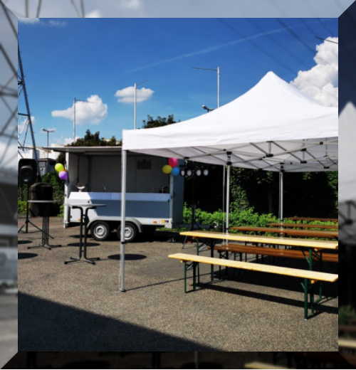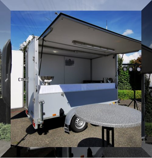 Festanhänger/Bedienungswagen mit Verkaufsklappe und hochwertiger Ausstattung für bis zu 60 Personen bei uns mieten!Die Grundausstattung beinhaltet:1 Faltpavillon 3 x 6 Meter4 Festzeltgarnituren 4 Stehtische4 Zeltgewichte60 Gläser nach WahlSteuerbare RGB LED Innenbeleuchtung1 Flaschenkühlschrank mit Glastüren (Kapazität: 220 Liter)1 Grill nach Wahl Holzkohle oder Gas (Brennmaterial optional, Spanferkelgrill , Grillwagen ausgenommen)1 Aktivmusikbox 600 Watt inkl. Lichtanlage1 Falttisch zum Thekenbau1 Stromzuleitung 380 V und 220 V möglich *Optional können Sie alle Artikel aus unserem Sortiment dazu buchen (zb. Hussen, Tischdecken, Kaffeemaschinen, Bierzapfanlage, Heizungen, Gläser, Geschirr, Bestecke etc.)Der Hänger wird von uns Beladen Geliefert und wieder Abgeholt Sie müssen sich um nichts kümmernGerne stehen wir Ihnen auch in Sachen Dekoration und Gestaltung beratend zur Seite.…..oder mieten Sie unseren Veranstaltungsraum in Mainz Mombachweitere Informationen erhalten Sie HIER